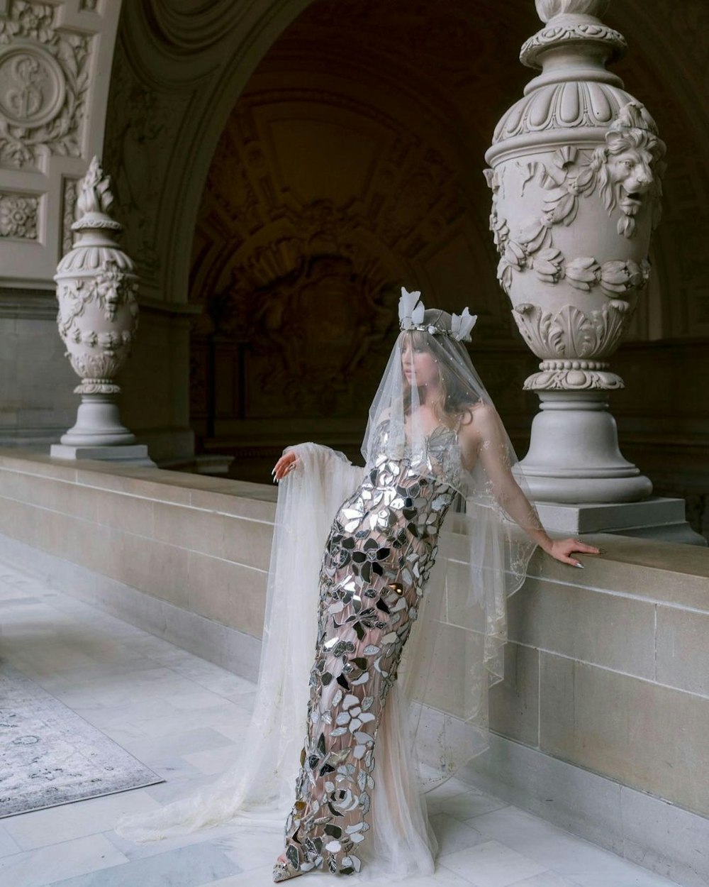 The artist model and oil heiress dazzled in a John Galliano wedding dress custom made with mirrors and a 16-feet long train that took over 200 hours to make. By Stephanie Maida. There were also quite a few royals on the guest list.